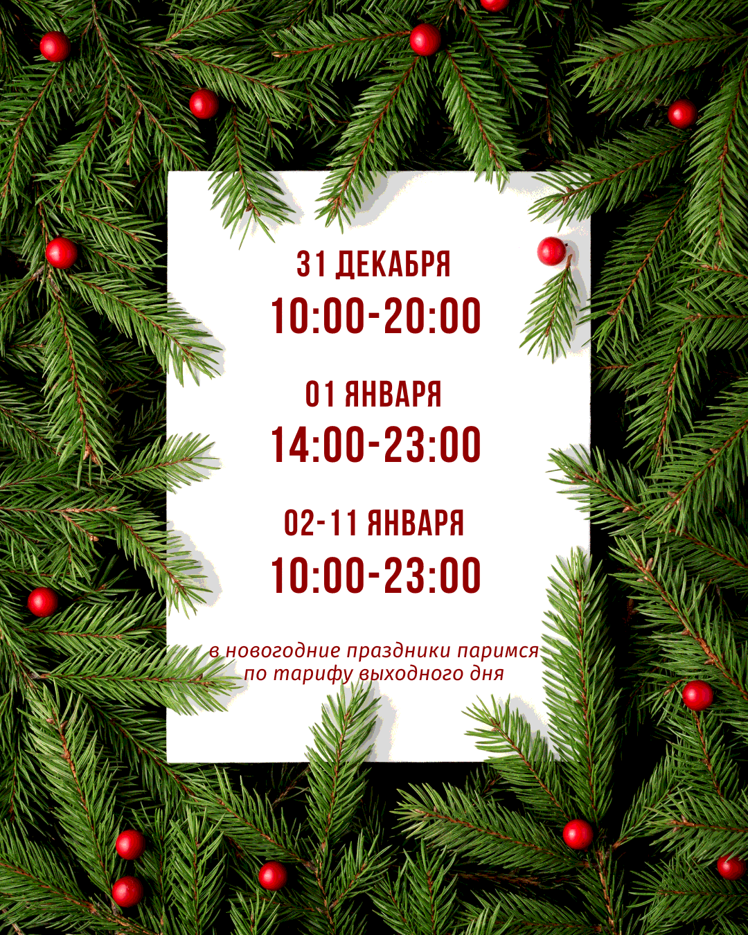 Режим работы 31 декабря - 11 января